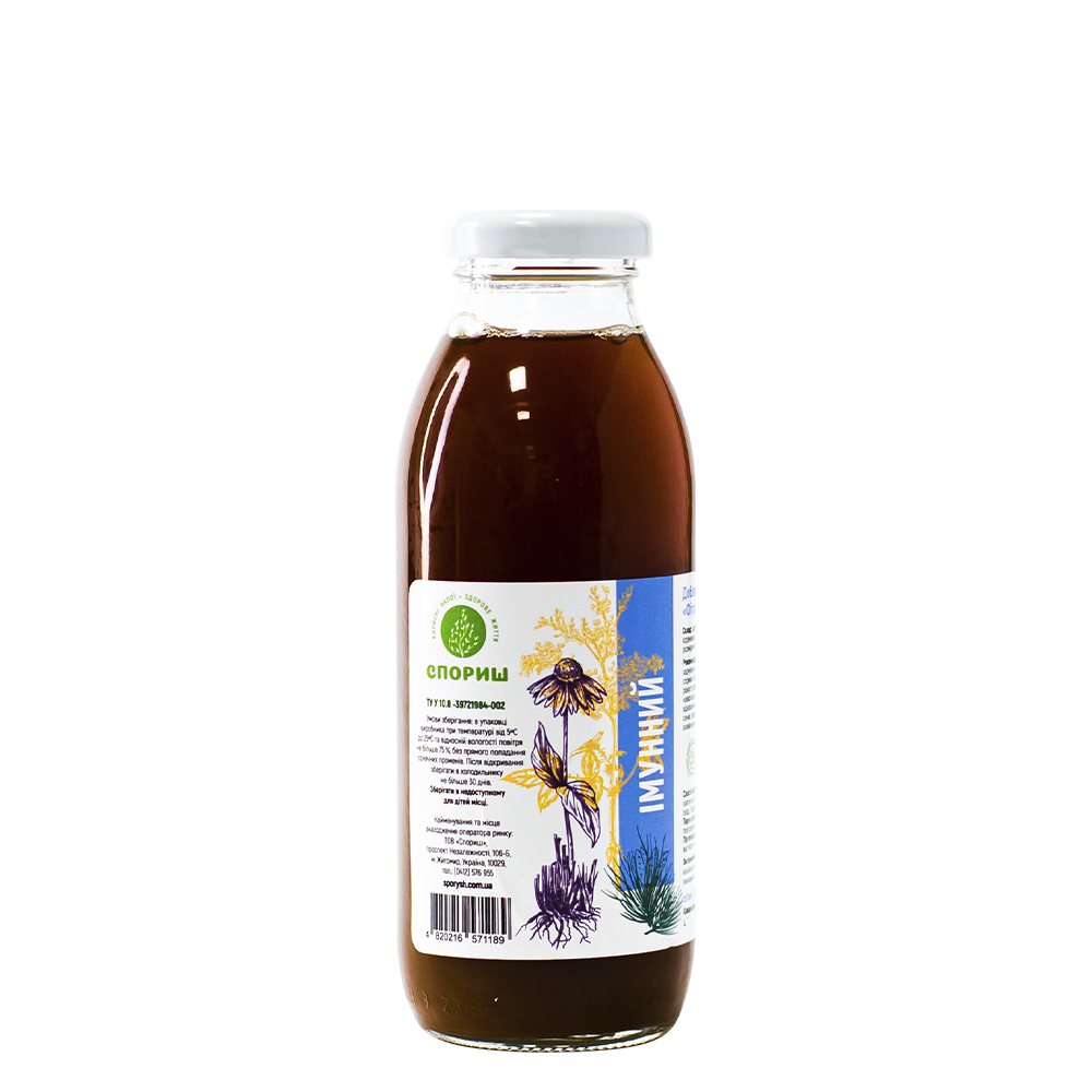 Склад: сироп з води питної підготовленої, фруктози, ехінацеї кореневищ, сосни бруньок, лабазника трави, моху ісландського, розмарину трави, іван-чаю трави.